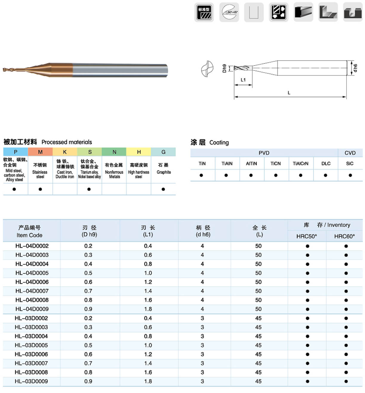 硬質(zhì)合金球頭銑刀(微小徑)