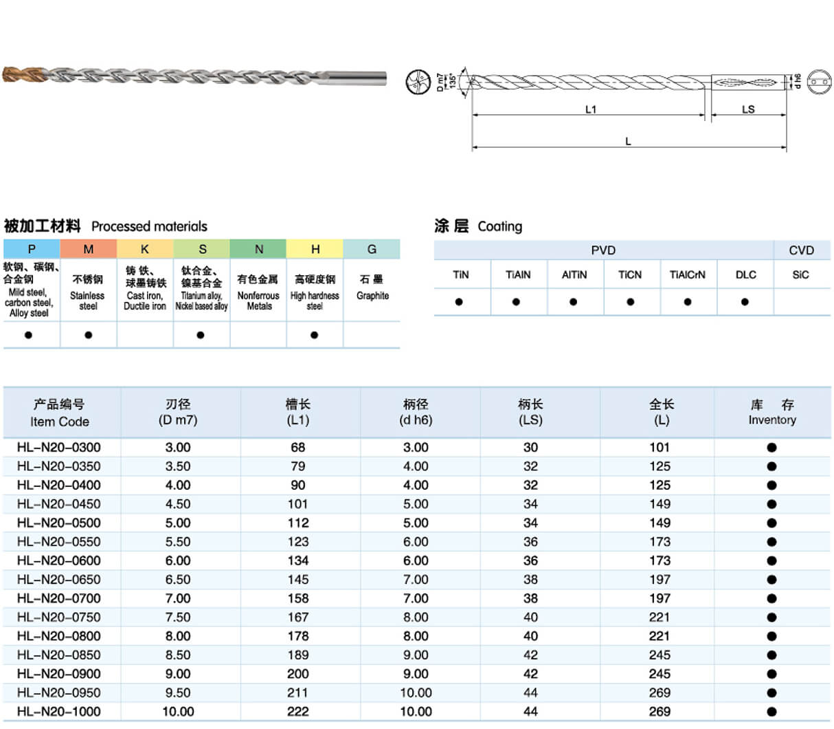 硬質合金深孔鉆20XD (內冷)
