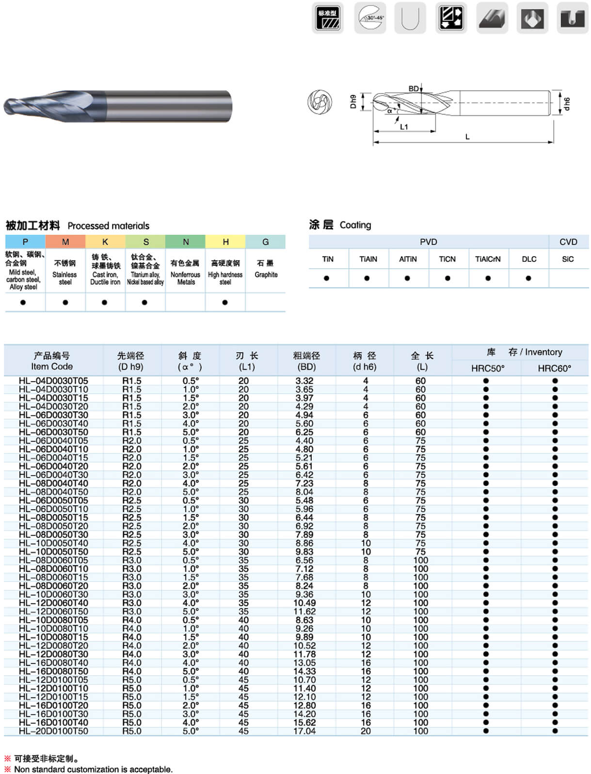硬質合金球頭錐度銑刀